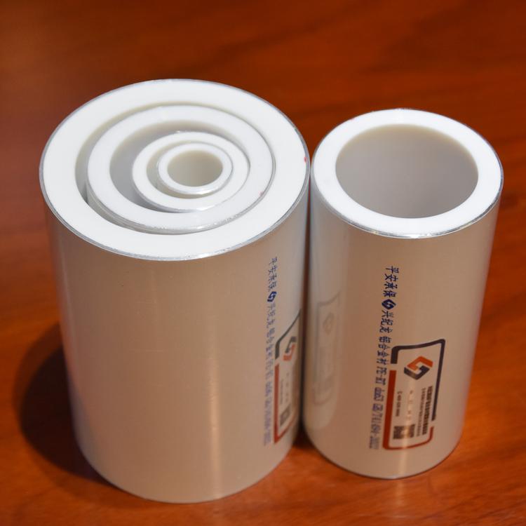 鋁合金襯塑復合管內外層采用線性預應力復合技術生產成型,整個生產過程在常溫下進行,產品的物理力學性能不發(fā)生任變化,內外層之間不添加任何膠粘劑,從而使管材管件在使用過程中熱熔部位同材質連接。