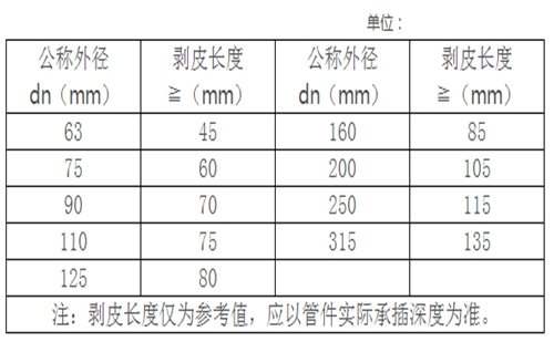 1、用專用切割機(jī)切斷鋁合金襯塑復(fù)合管材,切面(斷面)應(yīng)平齊垂直于管材軸線,電熔連接剝皮長度見下表。